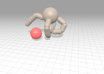 In CARL Grasp the agent is trained to pick up an object with a robot hand. Three bodies are observed by Grasp: ‘Hand’, ‘Object’, and ‘Target’. When Object reaches Target, the agent is rewarded. Apart from Grasp’s pyhiscal properties the target radius, height and distance are also varied.