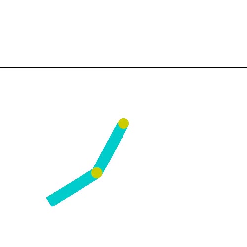 Acrobot is another swing-up task with the goal being swinging the end of the lower of two links up to a given height. The agent accomplishes this by actuating the joint connecting both links.